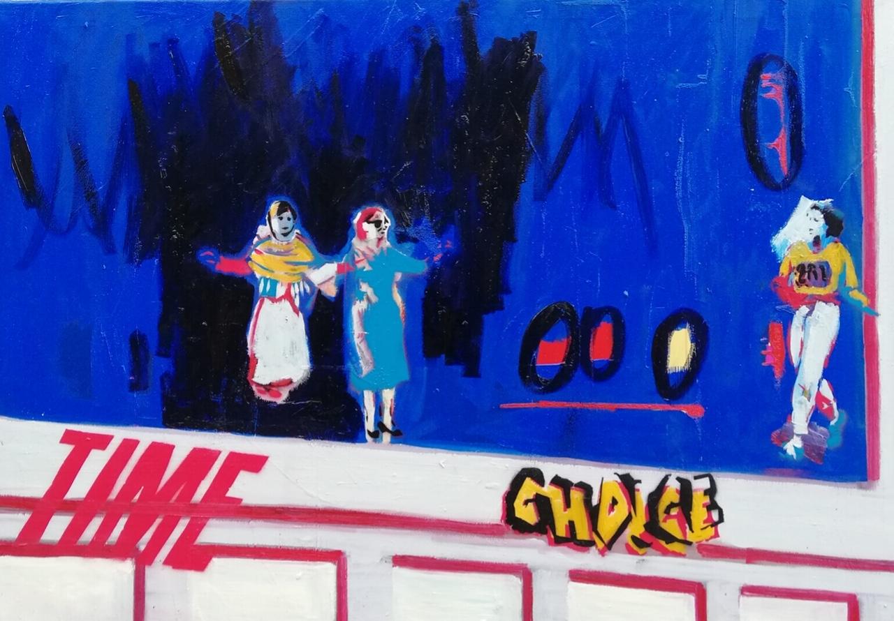 Nina Maron Nina Maron | Stadt der Frauen: Amelia Erhart, Marina Ginestà, Kathrine Switzer, Gertrude Ederle | 2018 | Öl auf Leinwand | 80 x 130 cm | 2.500 Euro
