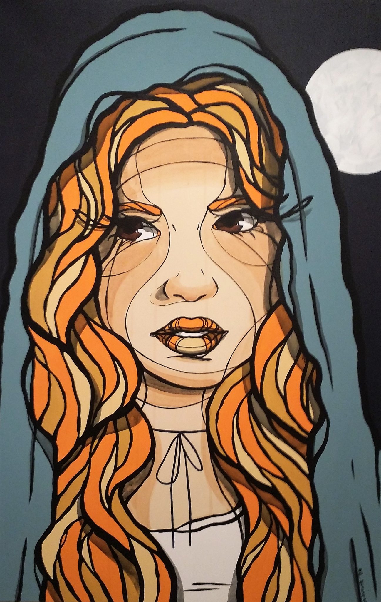 El Bocho El Bocho | Mondmädchen | 2017 | Acryl auf Leinwand | 120 x 80 cm