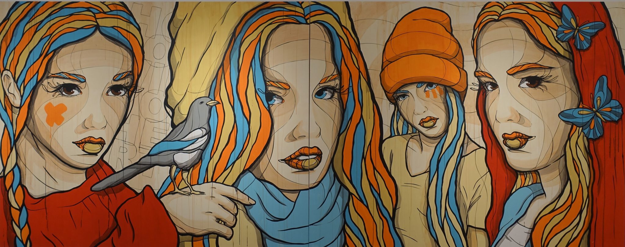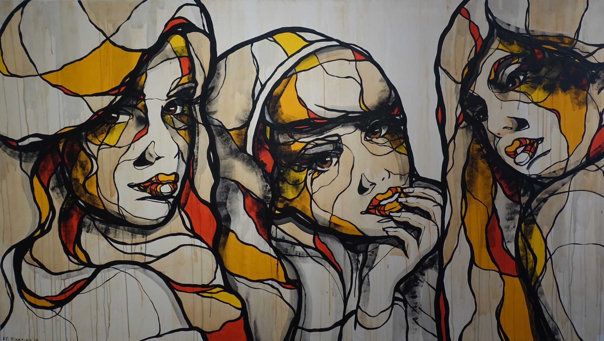 El Bocho El Bocho | 3 Mädchen | 2016 | Acryl auf Leinwand | 135 x 240 cm | 7200 Euro (verkauft)