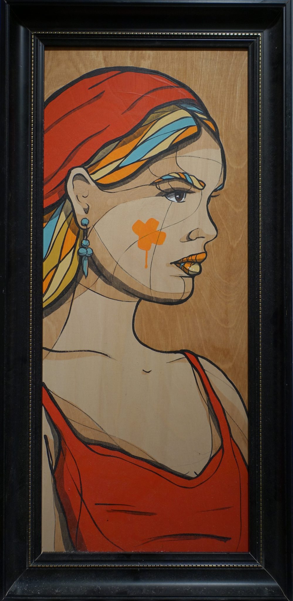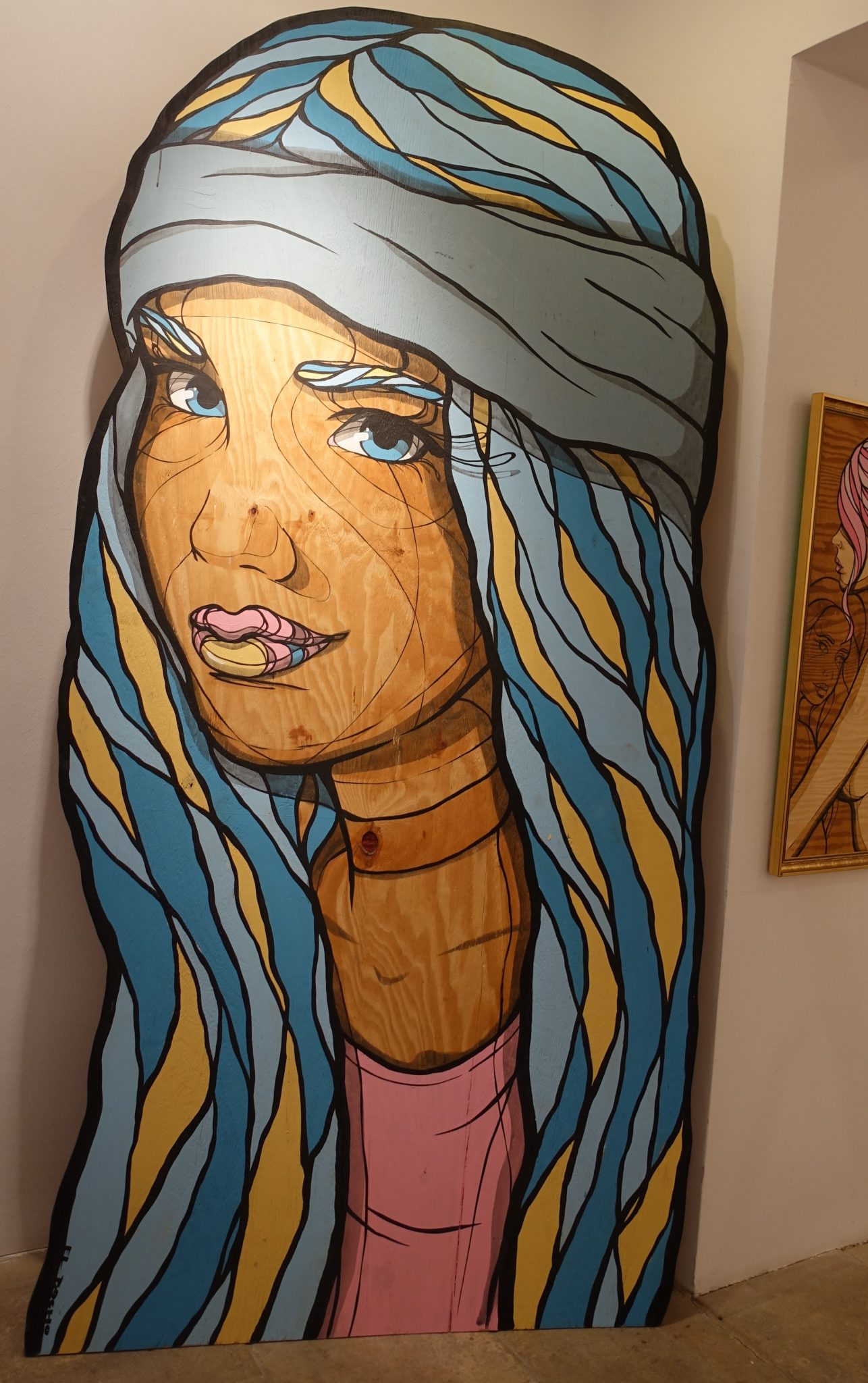 El Bocho El Bocho | Mädchen Mit Blauer Perle | 2017 | Acryl auf Holz | 65 x 30 cm | 950 Euro (verkauft)