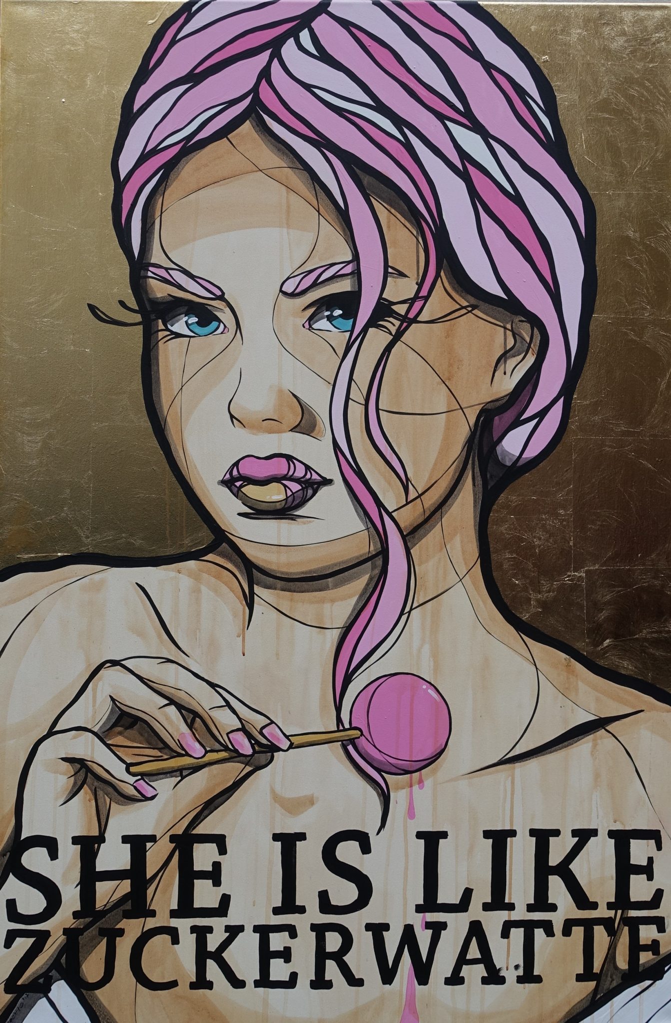 El Bocho El Bocho | She Is Like Zuckerwatte | 2017 | Acryl auf Leinwand | 120 x 80 cm | 3800 Euro (verkauft)