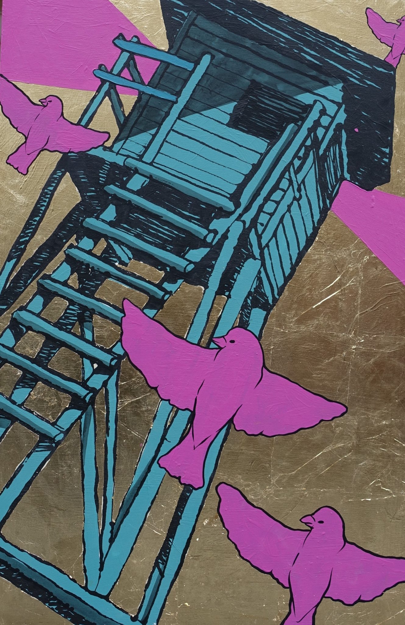 El Bocho El Bocho | Hochsitz Mit Vöglen | 2017 | Acryl auf Leinwand | 120 x 80 cm