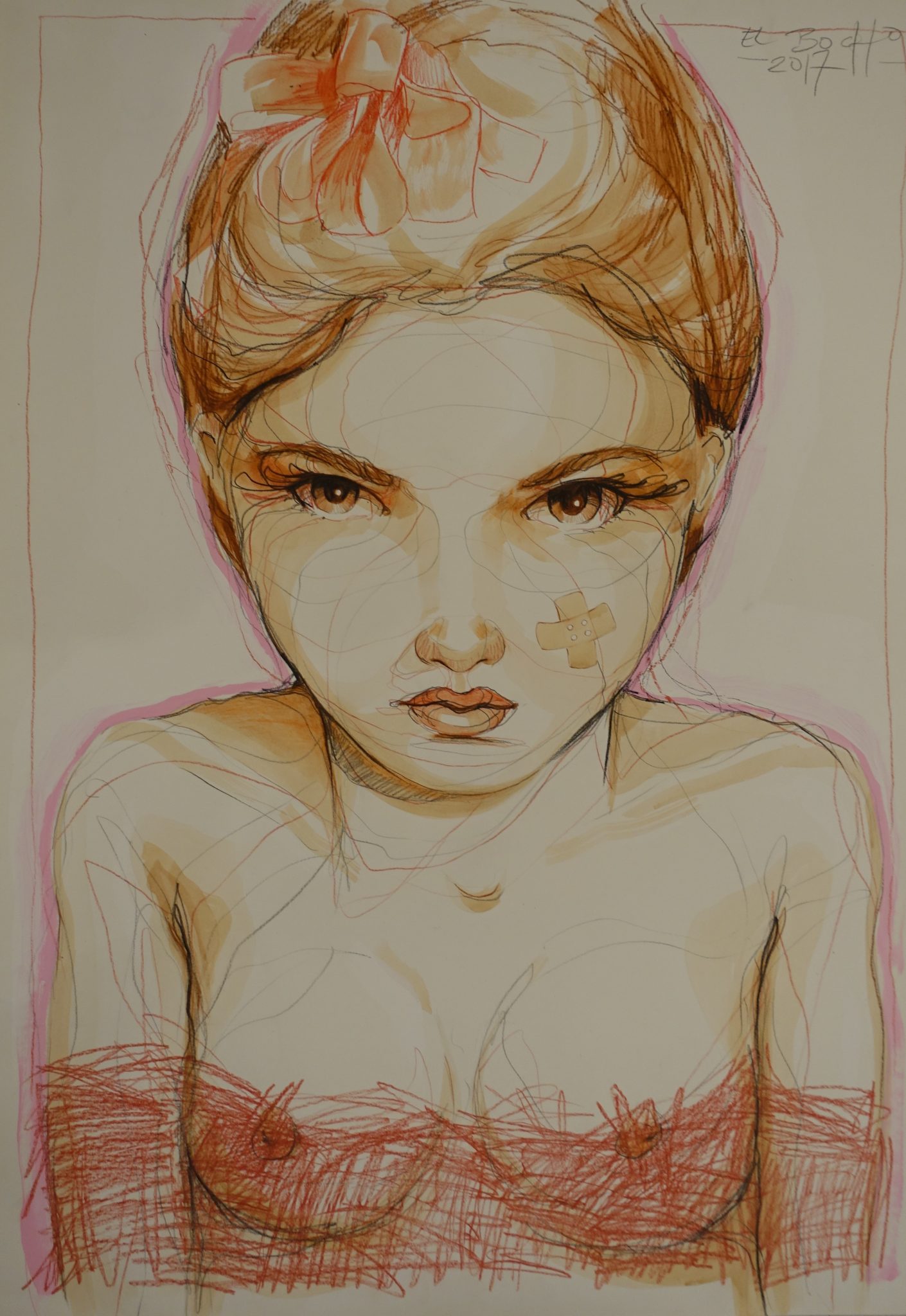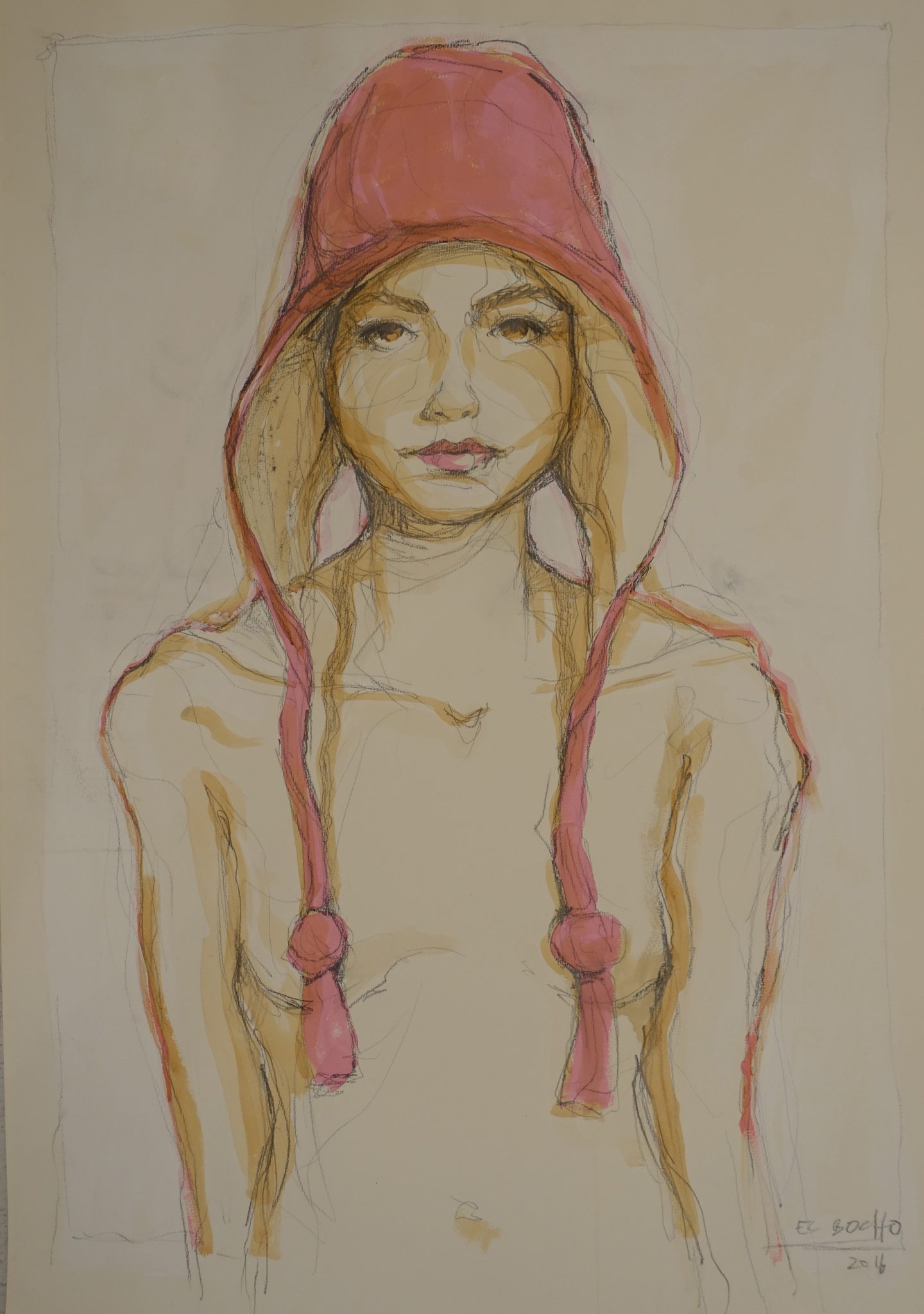 El Bocho El Bocho | Mädchen Mit Rosa Mütze | 2016 | Papierarbeit | 100 x 70 cm | 2000 Euro (verkauft)