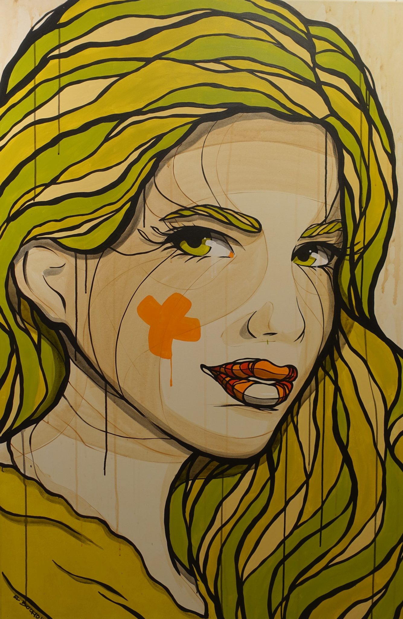 El Bocho El Bocho | Portrait Mit Grünen Haaren | 2017 | Acryl auf Leinwand | 150 x 100 cm | 4800 Euro