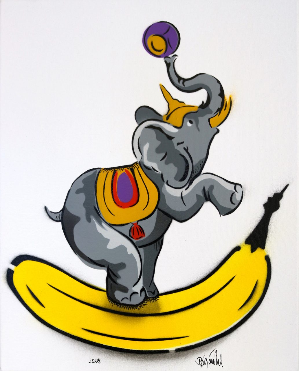 Thomas Baumgärtel Thomas Baumgärtel | Zirkusbanane | 2018 | Spraylack auf Leinwand | 50 x 40 cm | 1400 Euro