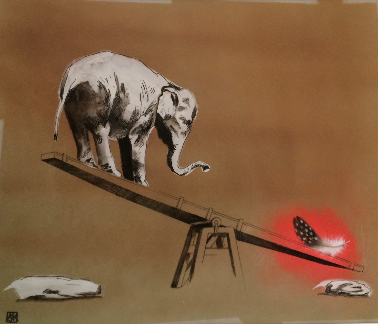 Astrid Köhler Astrid Köhler | Elefant | 2018 | Öl, Tusche und Spraylack auf Transparentpapier | 36 x 42 cm | 1100 Euro