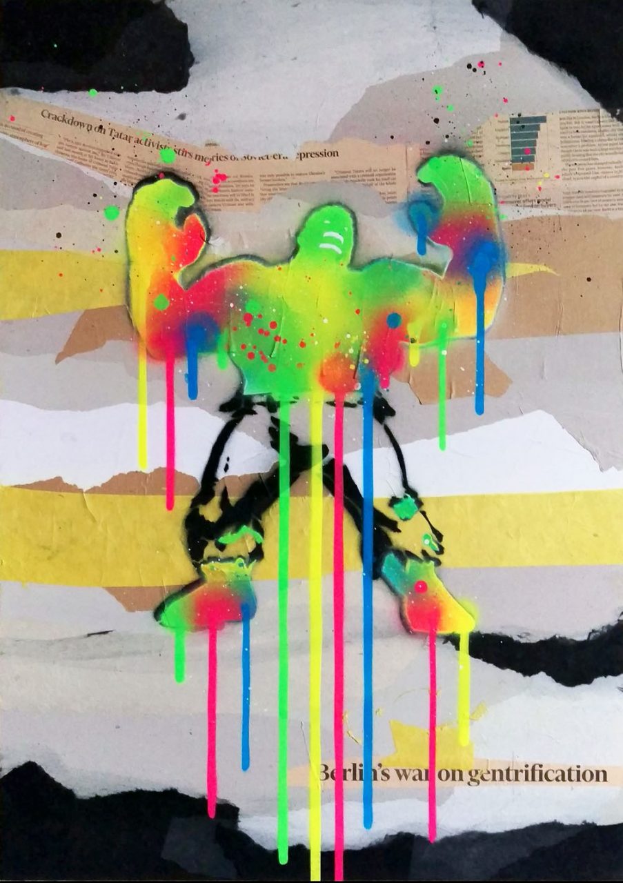 Eliot Eliot | Hulk. Berlin’s War On Gentrification | 2017 | Collage und Spraylack auf Leinwand | 71 x 51 cm | 780 Euro