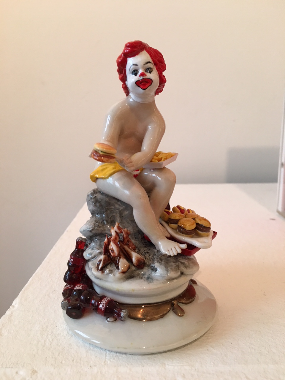 Ich bin begeistert von der nächsten Ausstellung, die thematisch die Figurinen aus Großmutters Vitrinen-schrank durch Nutzung der alten Positionen diskutiert und dabei Gesellschaftskritisch zum Beispiel Ronald McDonald portraitiert.