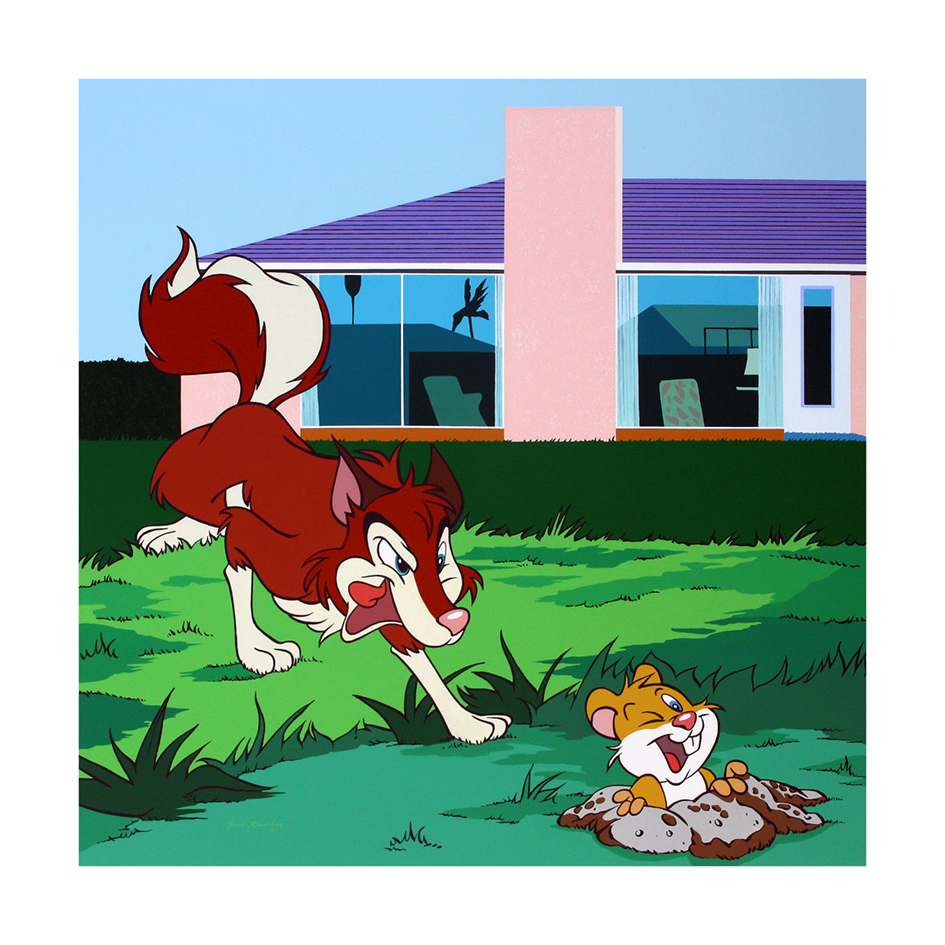 Fiktive Figuren und Charaktere, die Erinnerungen an Bildergeschichten und Zeichentrickfilme aus unserer Kindheit hervorrufen, prägen die Bilderwelt des portugiesischen Künstlers. Er rückt sie aus ihrem ursprünglichen Bildzusammenhang, entfremdet sie ihrer eigentlichen Funktion und kombiniert sie zu einem neuen Ganzen.